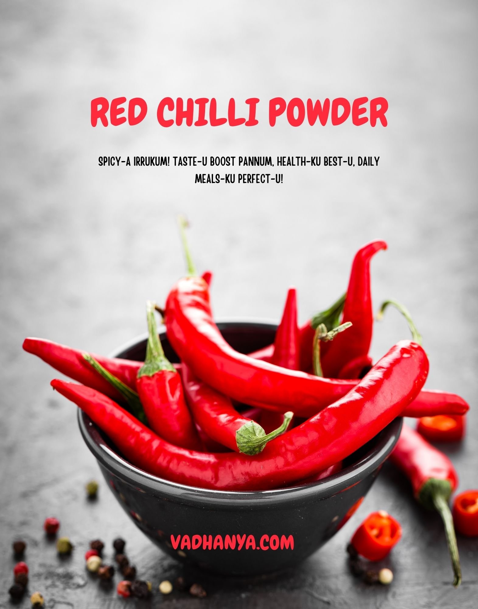 Add honest spice to your kitchen with Vadhanya’s Red Chilli Powder—pure, simple, and made for families.