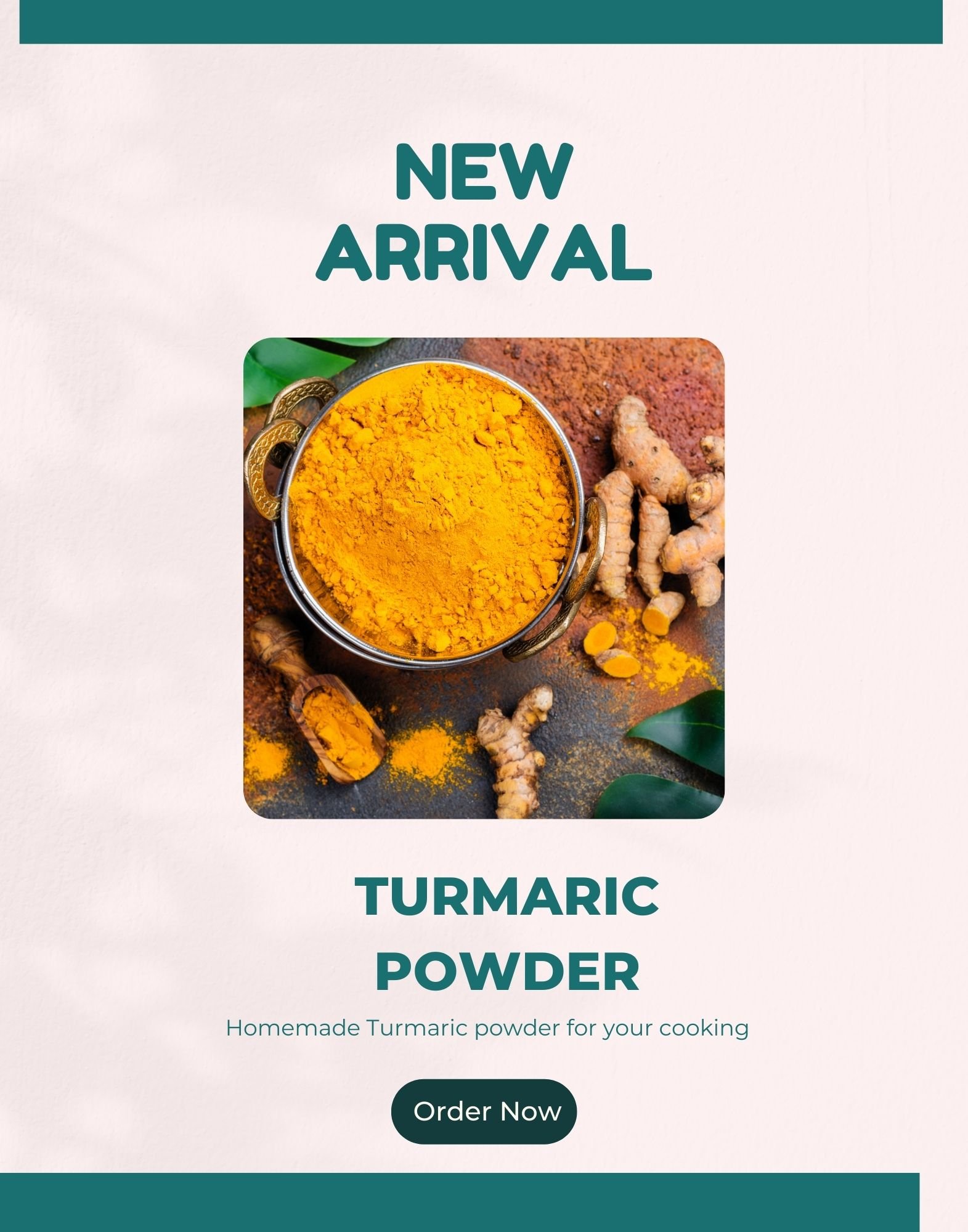 Pure turmeric powder made from traditionally processed turmeric roots. Natural colour, aroma, and ideal for everyday cooking.